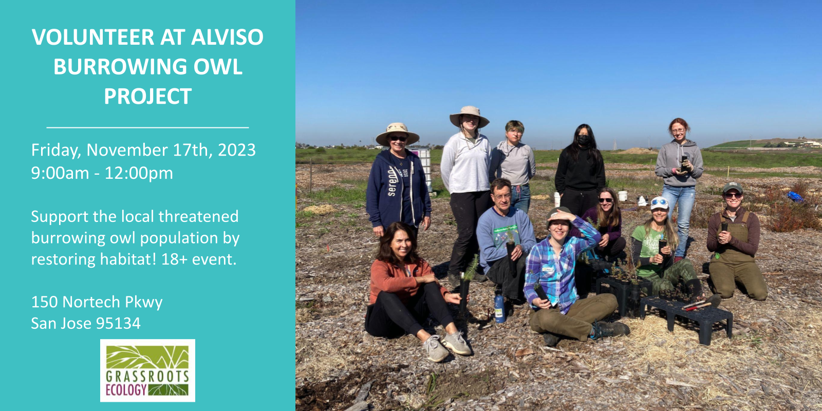 Parking information: Navigate to 150 Nortech Pkwy, San Jose, CA 95134 the closest address to the project site. The site is not open to the public because it is sensitive habitat for burrowing owls. Access the site through the large metal gates the end of the road - there will be a sign with directions. Park inside the gates of the project site along the unpaved road. The gate will be locked at 9:15, please arrive on time.