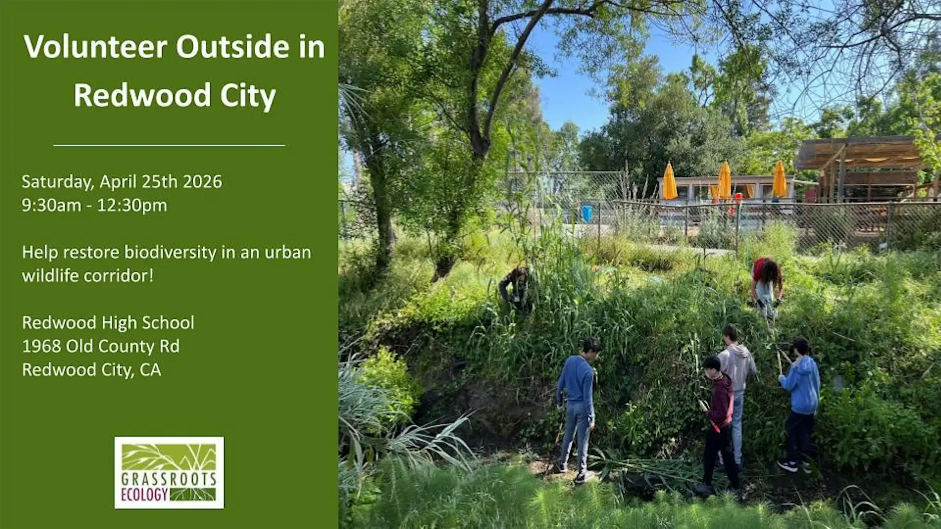Join Grassroots Ecology for a morning of habitat restoration at Redwood High School! Volunteers will support the restoration of local California biodiversity by weeding and mulching around native plant species by using gloves and tools, including buckets, shovels, and other hand tools.