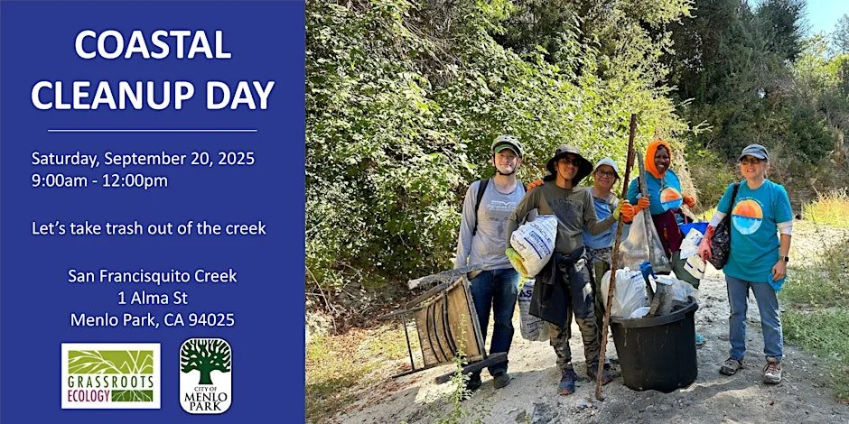 The City of Menlo Park and Grassroots Ecology are partnering to host over 100 volunteers for Coastal Cleanup Day at San Francisquito Creek. This annual event brings communities together throughout the state to clean California's beaches, lakes, and watersheds. Join us as we remove trash and recyclables from our local watershed to celebrate and enhance our beautiful waterways.