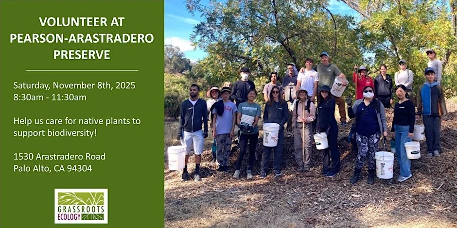 Volunteer with Grassroots Ecology to support the expansive oak woodlands and grasslands at Pearson-Arastradero Preserve. These ecosystems are home to an abundance of wildlife, including deer, bobcats, coyotes, many species of birds and insects, and more!