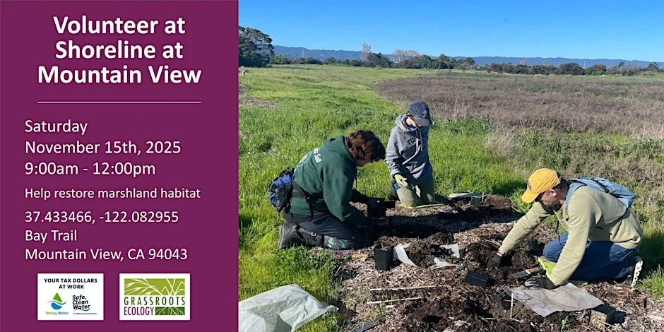 Volunteer with Grassroots Ecology to restore upland marsh transition zone habitat for local wildlife. Expect to learn about the protection and ecology of our local baylands and to help take care of our public lands. During our time together, we will planting California native plants that grow specifically in the marshlands of the San Francisco Bay.