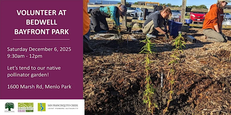 Come join us to work on a project funded by Measure AA to tend a pollinator garden that will sustain a small ecosystem at Bedwell Bayfront Park. During our time together, we will be planting native plants, watering, and adding mulch to our garden area to support local pollinator populations.