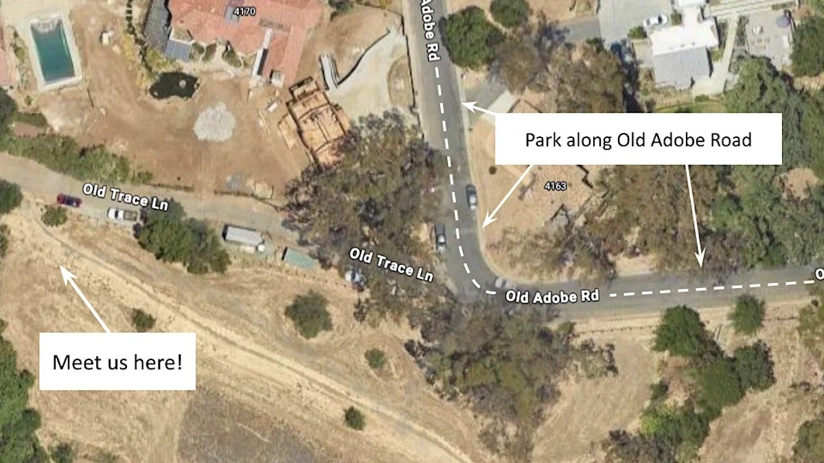 Meeting Space: We will be meeting in the driveway area along Old Adobe Road, find the coordinates here.