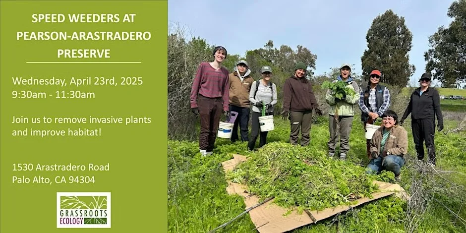 Pearson-Arastradero Preserve has expansive oak woodlands and grasslands with beautiful trees and wildflowers. It is home to an abundance of wildlife, including deer, bobcats, coyotes, and many species of birds and insects. The work you do will support the health of the preserve's ecosystems!