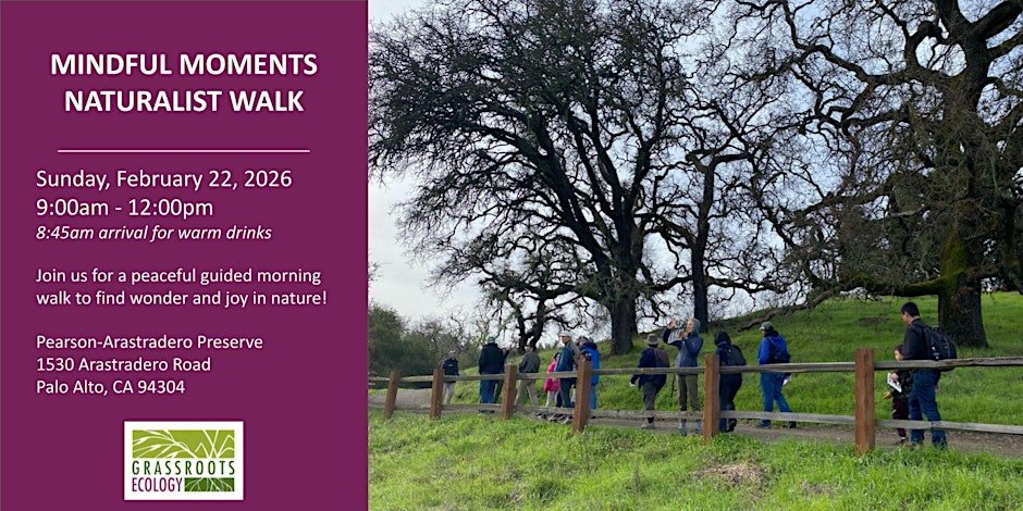 Visit Grassroots Ecology’s Pearson-Arastradero Preserve webpage to learn more about the ecosystem and accessibility considerations. While the preserve is dog friendly, please leave your pups at home for this event.