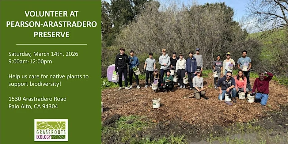 Pearson-Arastradero Preserve has expansive oak woodlands and grasslands with beautiful trees and wildflowers and is home to an abundance of wildlife, including deer, bobcats, coyotes, and many species of birds and insects. The work you do will support the health of the preserve's ecosystems!