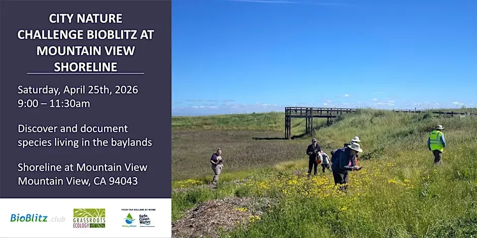 Come join a bioblitz - a gathering of people who love nature and who all work together to find and identify as many different species found in a certain location. With just a smartphone and the iNaturalist app, you can contribute to science and help researchers gather data about the biodiversity at Shoreline at Mountain View.