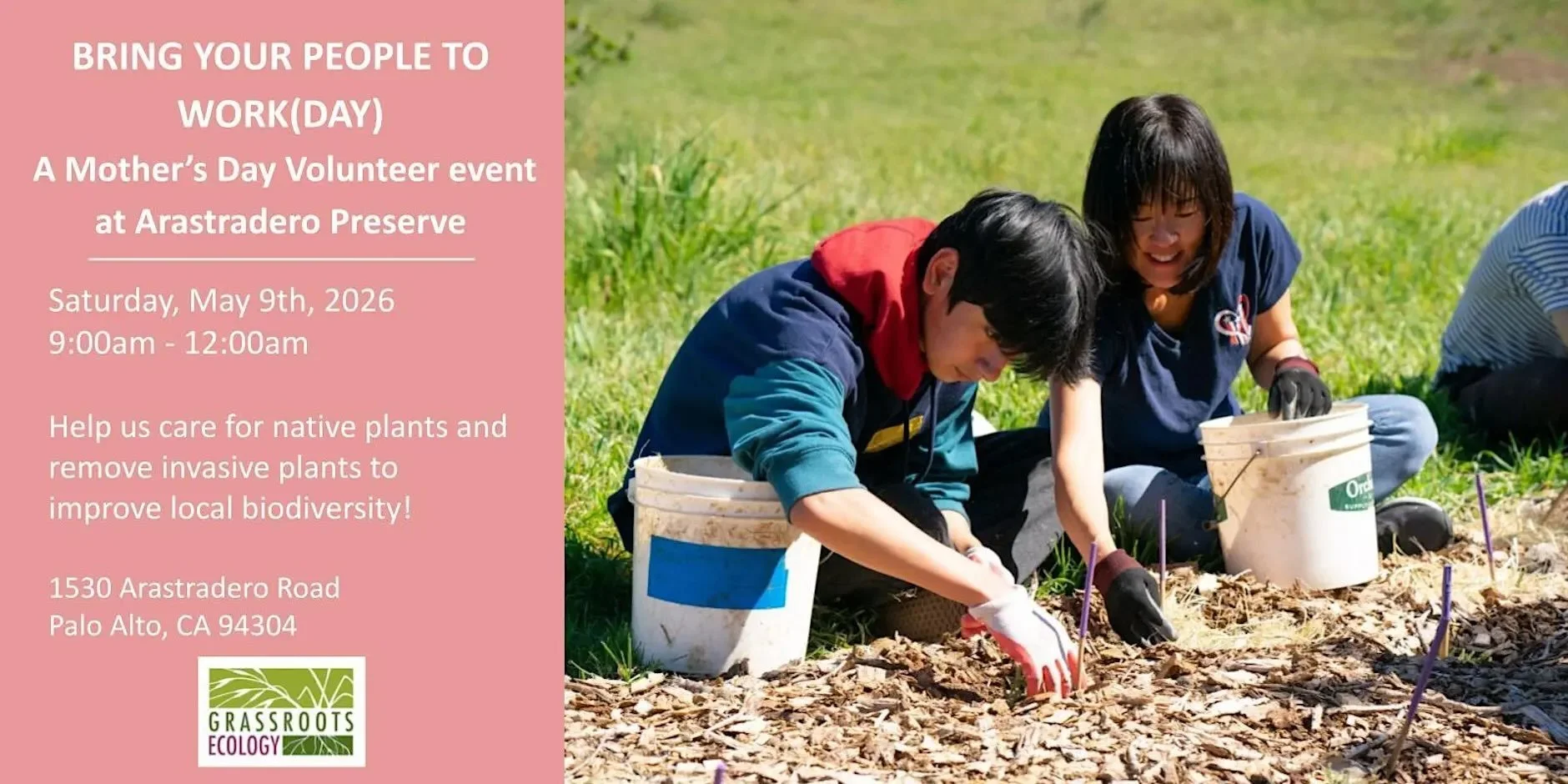 Celebrate connection this Mother’s Day weekend by bringing someone special, whether that’s a parent, mentor, friend, family member, or just yourself, to a community workday at Pearson Arastradero Preserve! While the timing is inspired by Mother’s Day, this event is for everyone who wants to spend time outdoors!