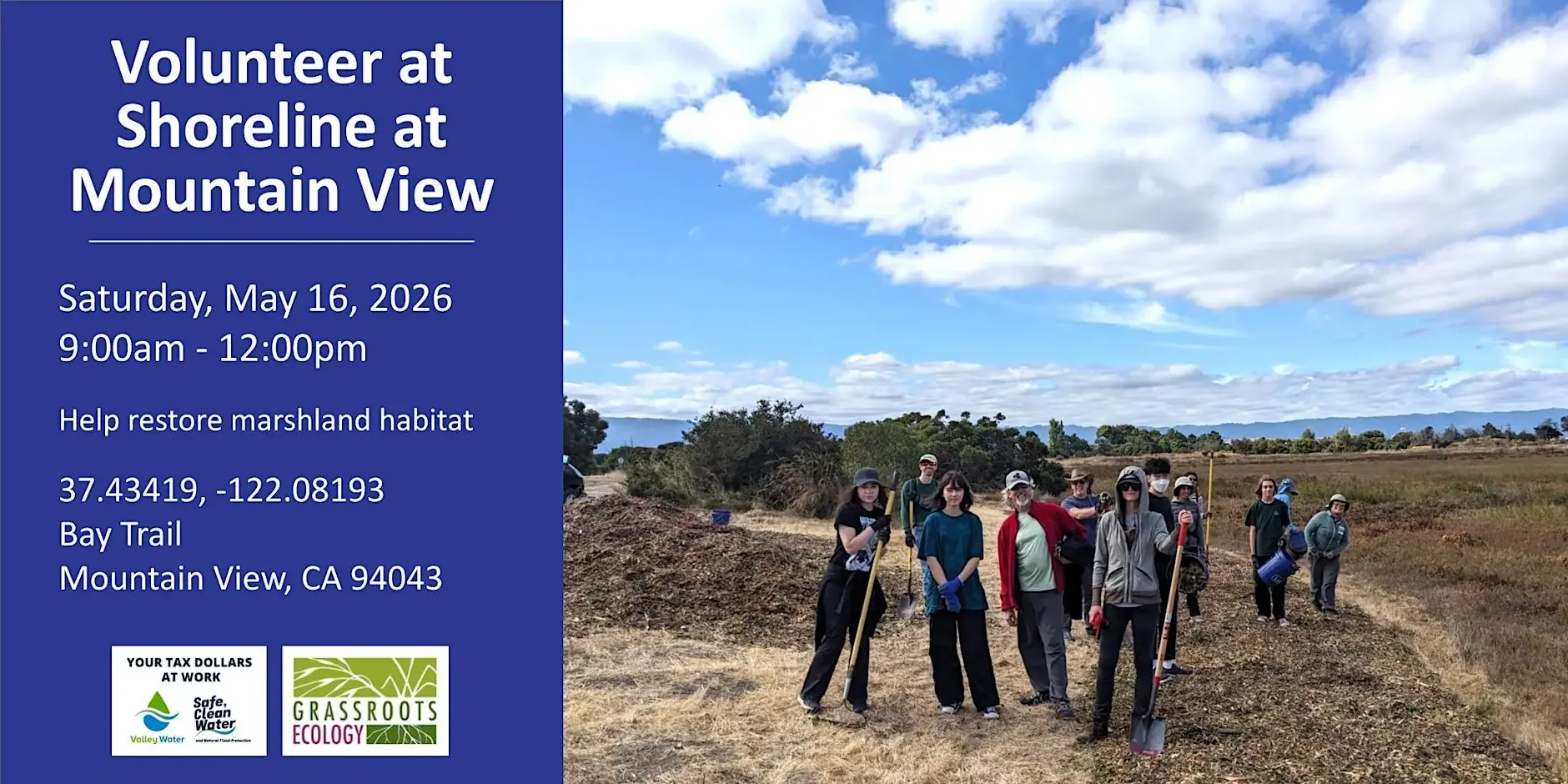 Volunteer with Grassroots Ecology to restore upland marsh transition zone habitat for local wildlife. Expect to learn about the protection and ecology of our local baylands and to help take care of our public lands. During our time together, we will be maintaining and expanding our planting area by sheet mulching and weeding introduced plants.